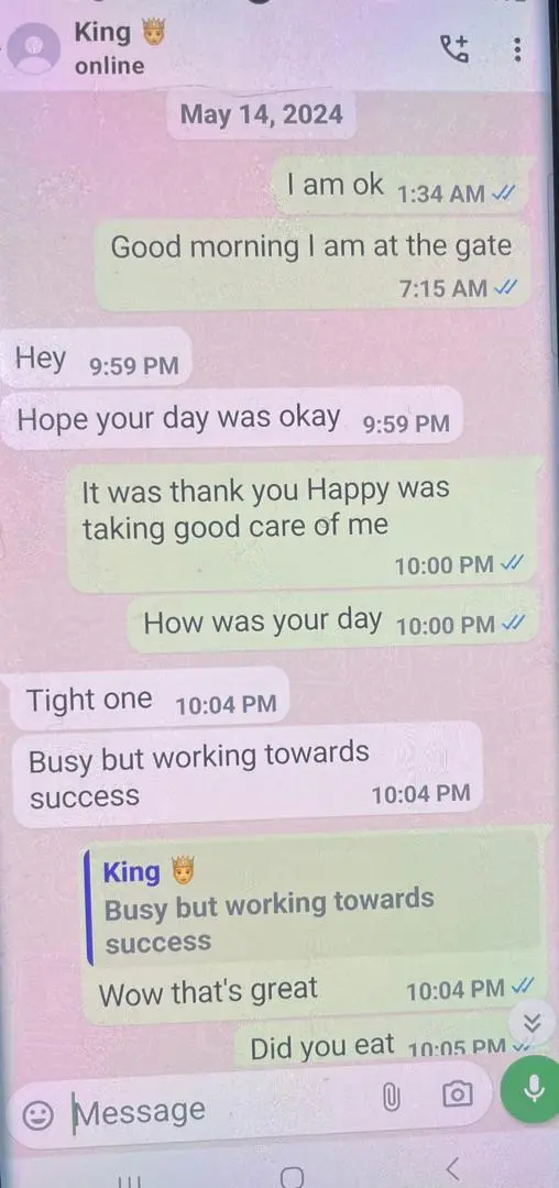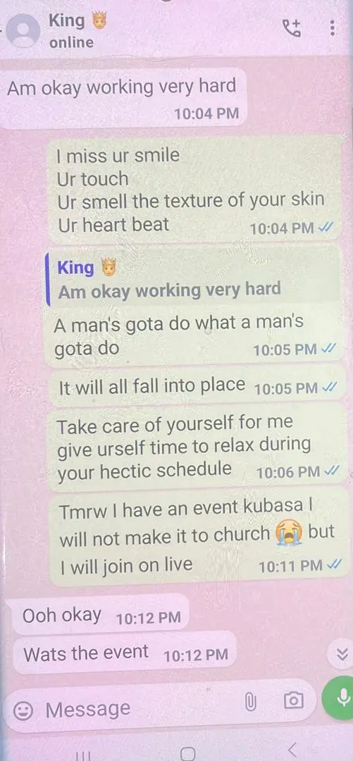 The messages between Elaine and Prophet Magaya, saved as “King” in her contacts, show a series of flirtatious exchanges that often took place late into the night. The conversations, filled with affectionate language and suggestive banter, have raised questions about the nature of their relationship, casting doubt on the public persona of the prophet.