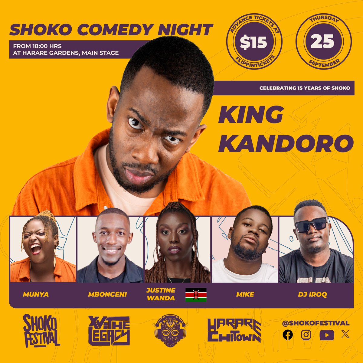 HARARE — The Shoko Festival, Zimbabwe’s longest-running festival of urban culture, is set to celebrate its landmark 15th edition with a highly anticipated Comedy Night on Thursday, September 25, 2025, at Harare Gardens. This year’s event promises to be an unforgettable showcase of local and international comedic brilliance, headlined by the internationally acclaimed Zimbabwean comedian King Kandoro.